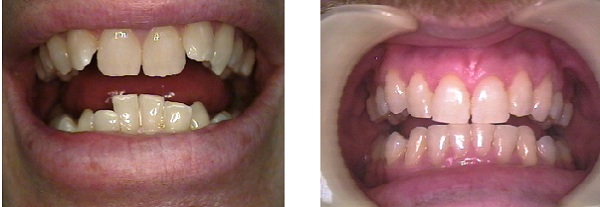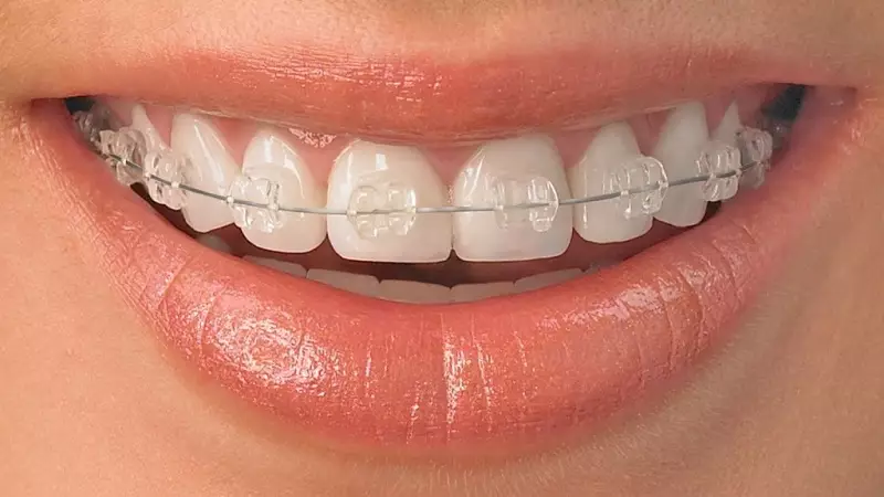 Керамічні брекети. Замочки під колір емалі непомітно зливаються з фоном, виглядають делікатно в житті й на фото, натомість вимагають більш ретельної гігієни та акуратності у догляді.